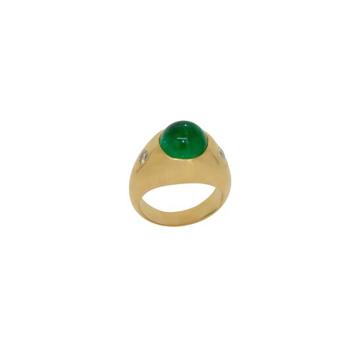 Domed ring in 18k yellow gold set with a cabochon emerald of Colombian origin.