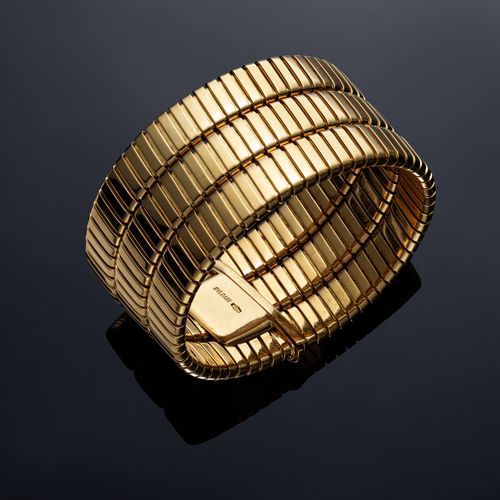 Cuff bracelet composed of three tuboga rings, in 18K yellow gold.